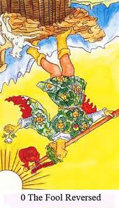 When the Fool is reversed, we tend to be not trusting our own inner knowledge and not acting on our own instincts. We may be making foolish choices. The energy that would help us to start fresh and trustingly take that first step (which is a risk) is blocked.
