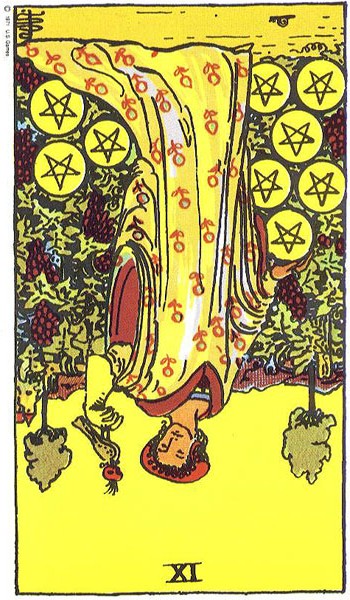 But if you want more than that, all I can say is: two women, one upside-down (not me, I was just joking). Lots of flowing emotion and intuition (Queen of Cups). Possibly a day in which our emotions get in the way of our struggle to be financially independent–or maybe not–maybe it is our particular plans that get turned upside-down, but maybe that’s not all bad. See what this means to you–meanwhile, I am going to go and make that cup of tea….