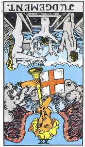Hmm. There is nothing like having the past come back to haunt you — literally! (Judgment, reversed.) Still, note that even when the past comes back to haunt you, there is still an angel present to watch over you (or under you, as the case seems to be in this reversed card).