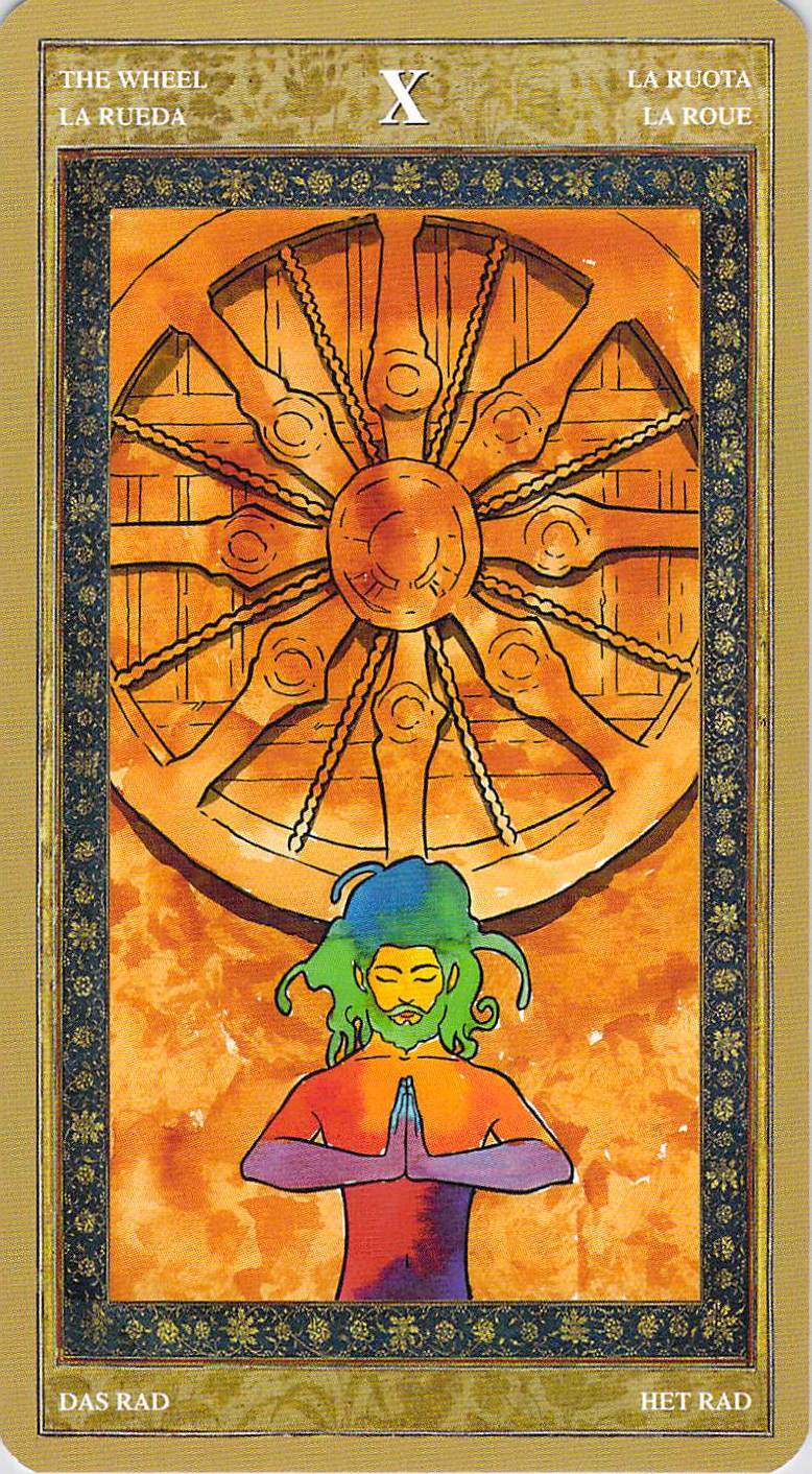 Though the King of Chalices has a major arcana card sitting to his left, The Wheel (or The Wheel of Fortune in a Rider-Waite deck), it’s the King who touches my heart here today. Because when men go through rough times, often they don’t get the support that they need. It’s assumed that they are invincible or something because they are men. But that’s not so. Men are far from invincible. They can be hurt. When I see this King, with a child in his lap, turned upside-down, it makes me think of divorce courts that are biased against men, and of all the men who end up not being able to see their children because of this bias. It’s wrong and hurtful. And I say that speaking as a woman, as a divorced (though now remarried) mother, and as a feminist. Men should be allowed to nurture, not denied their chance to do so because of a relationship gone wrong.