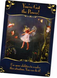 Doreen Virtue’s Magical Messages from the Fairies deck (though the fairy cards will never seem to scan straight!). It seems to express the message of my nine-card spread much more succinctly: “You’ve got the power! Use your abilities to resolve this situation. You can do it!”