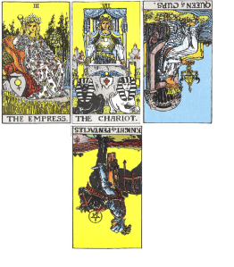 4. Seller’s recommended next action: Knight of Pentacles, Reversed. To me, this looks like I should send a message warning that I am thinking of turning down the offer, despite The Chariot above. Remember, The Chariot above is their Chariot — not mine! This is a good deal for the Buyer, but not necessarily for me. Knights may be messengers — and pentacles can represent money. To me, this is a thumb’s down on the amount of the offer and on the buyer’s current lack of financing. At the same time, I could entertain other offers from the same buyers later — when their Chariot has progressed further and they are more ready.
