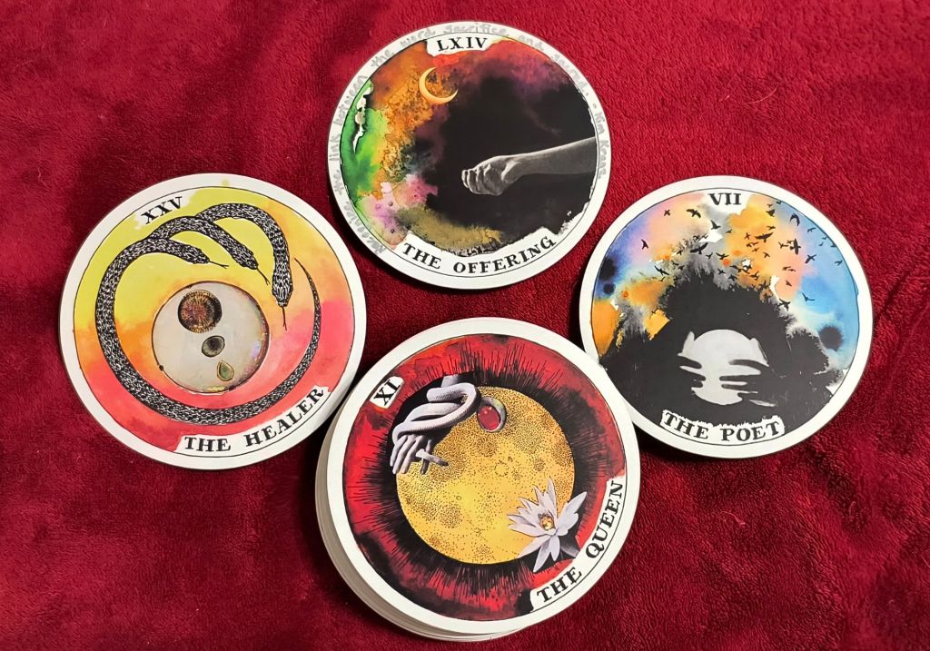 No positions in this spread. What I see is a snake on one side and a poet on the other, with an offer in between, an offer with a crescent moon overhead. That doesn’t look like endless war. It looks like eventual peace. It looks like someone makes a sacrifice to bring about peace.